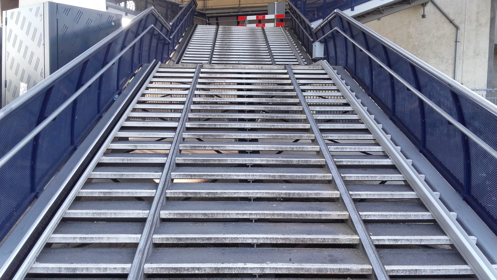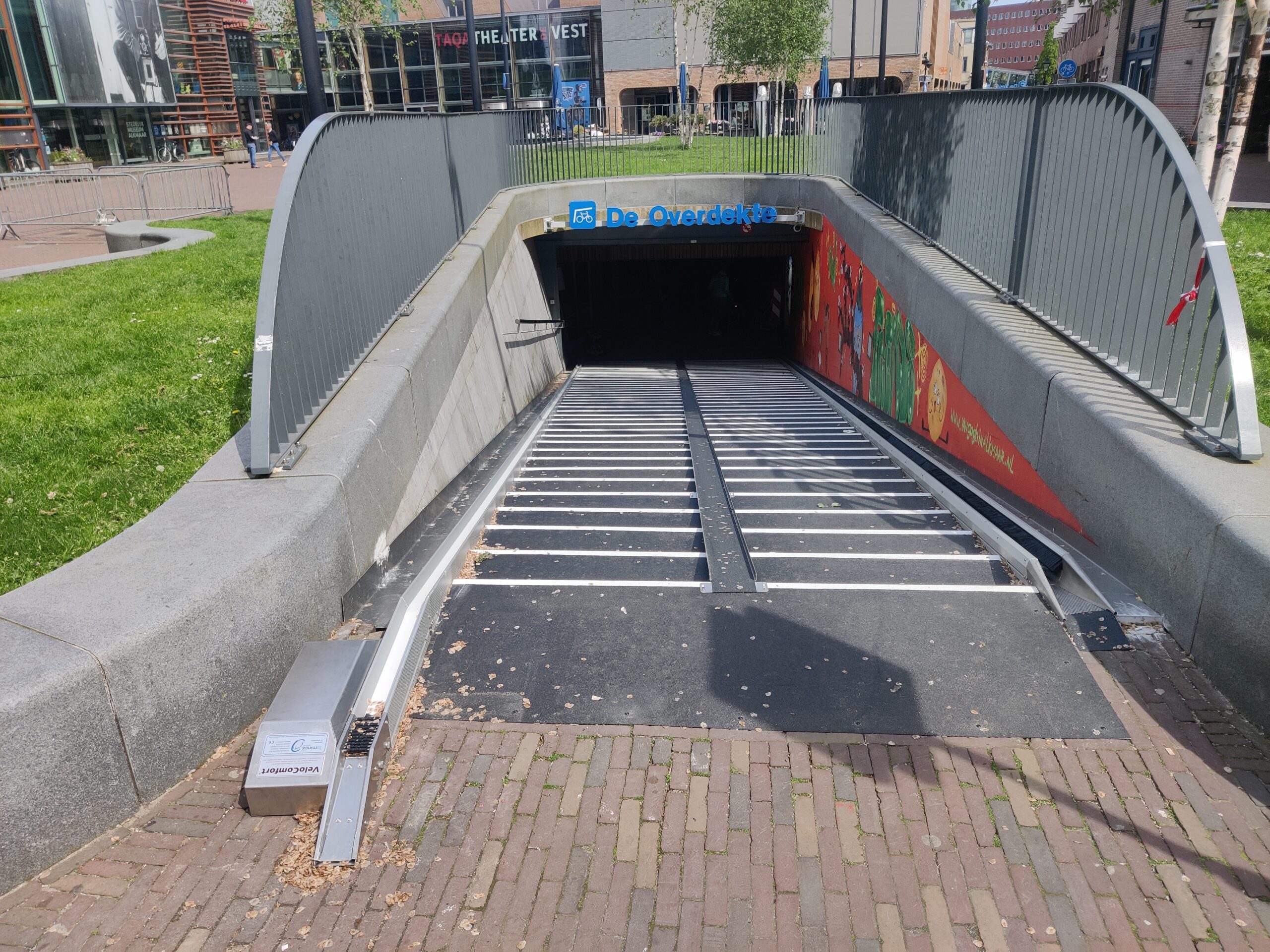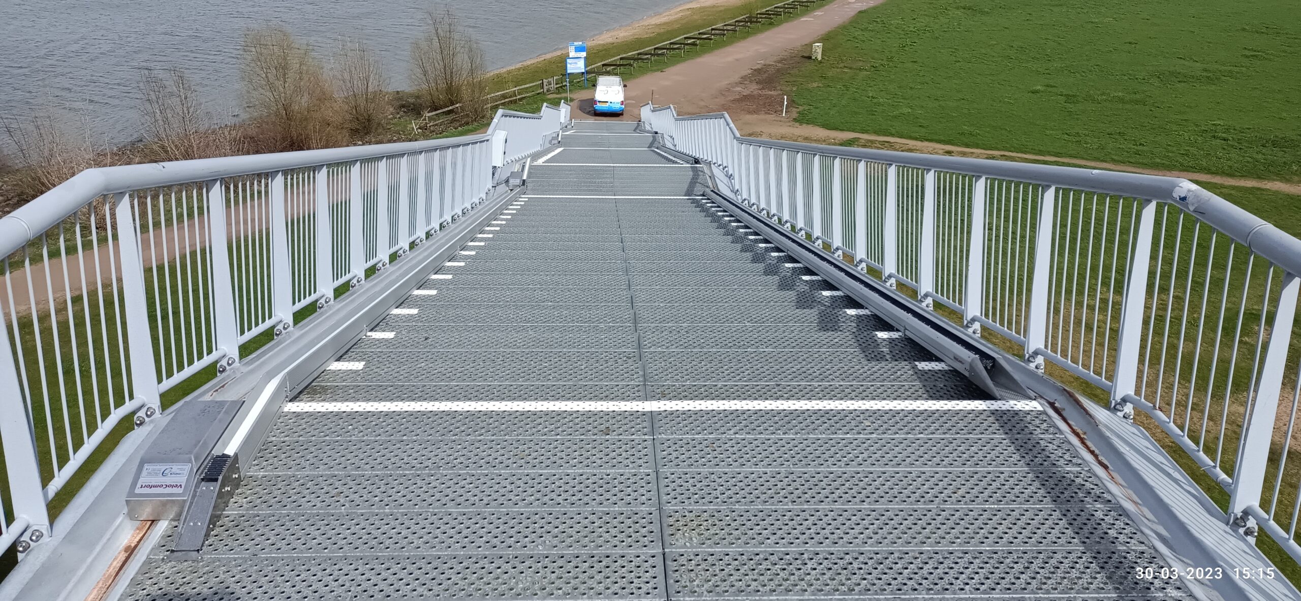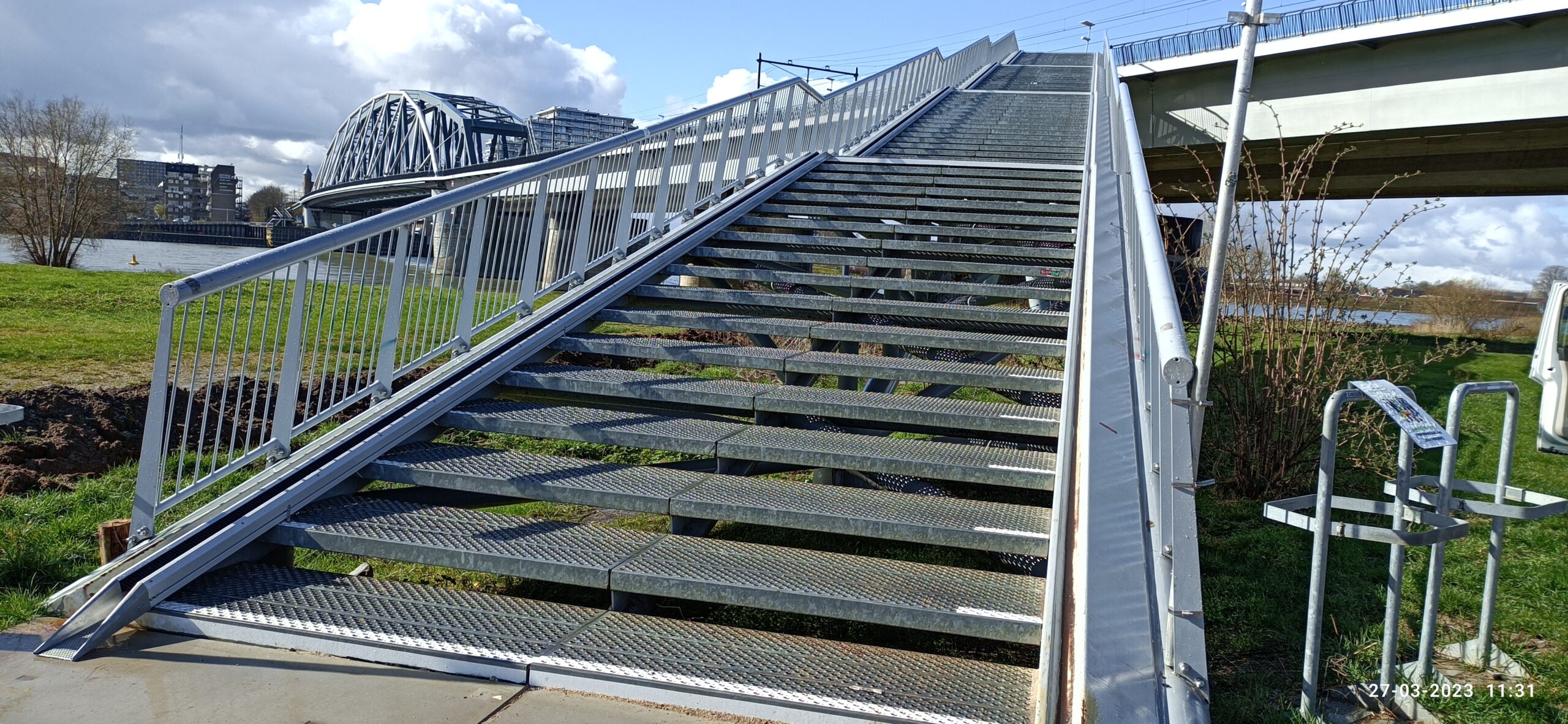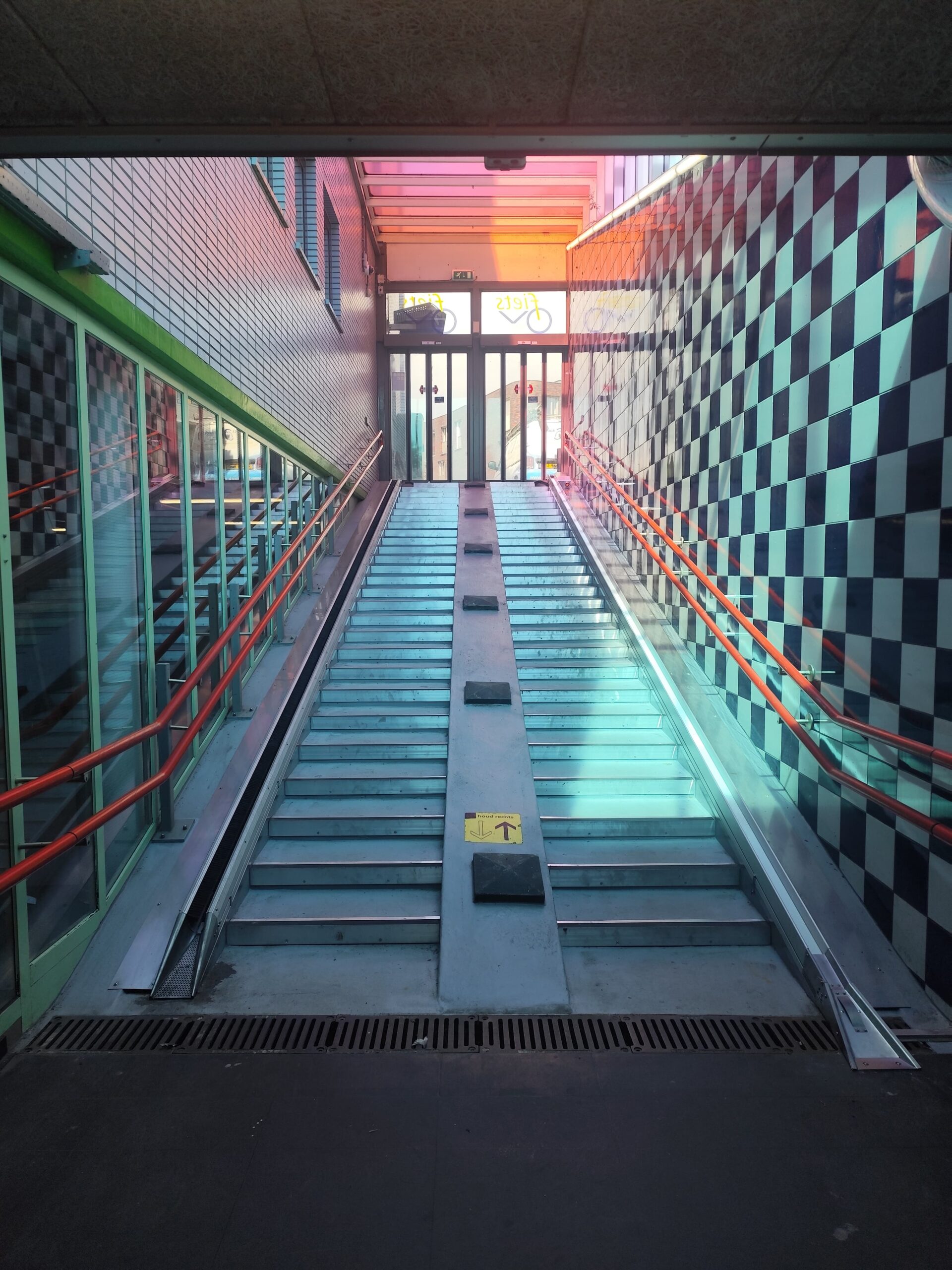 VeloComfort® is an innovative bicycle transport system that helps users guide their bicycles effortlessly and safely from top to bottom. At the top of the stairs, the right side is equipped with the VeloComfort® Gutterbrush, a specially designed bicycle gutter fitted with brushes that allow the bike to be slowed down. This enables the user to guide the bicycle downward in a controlled manner and at their own pace.