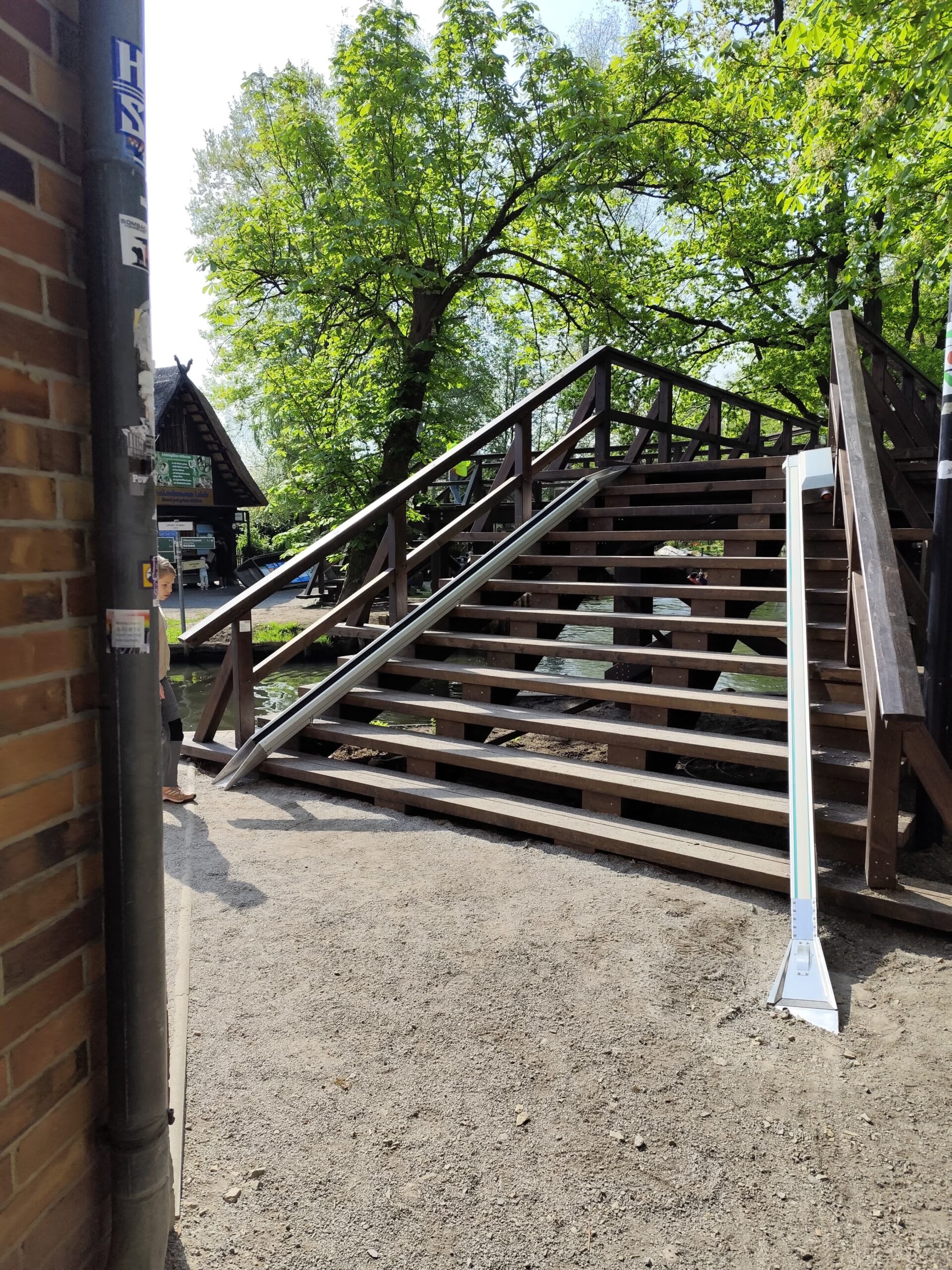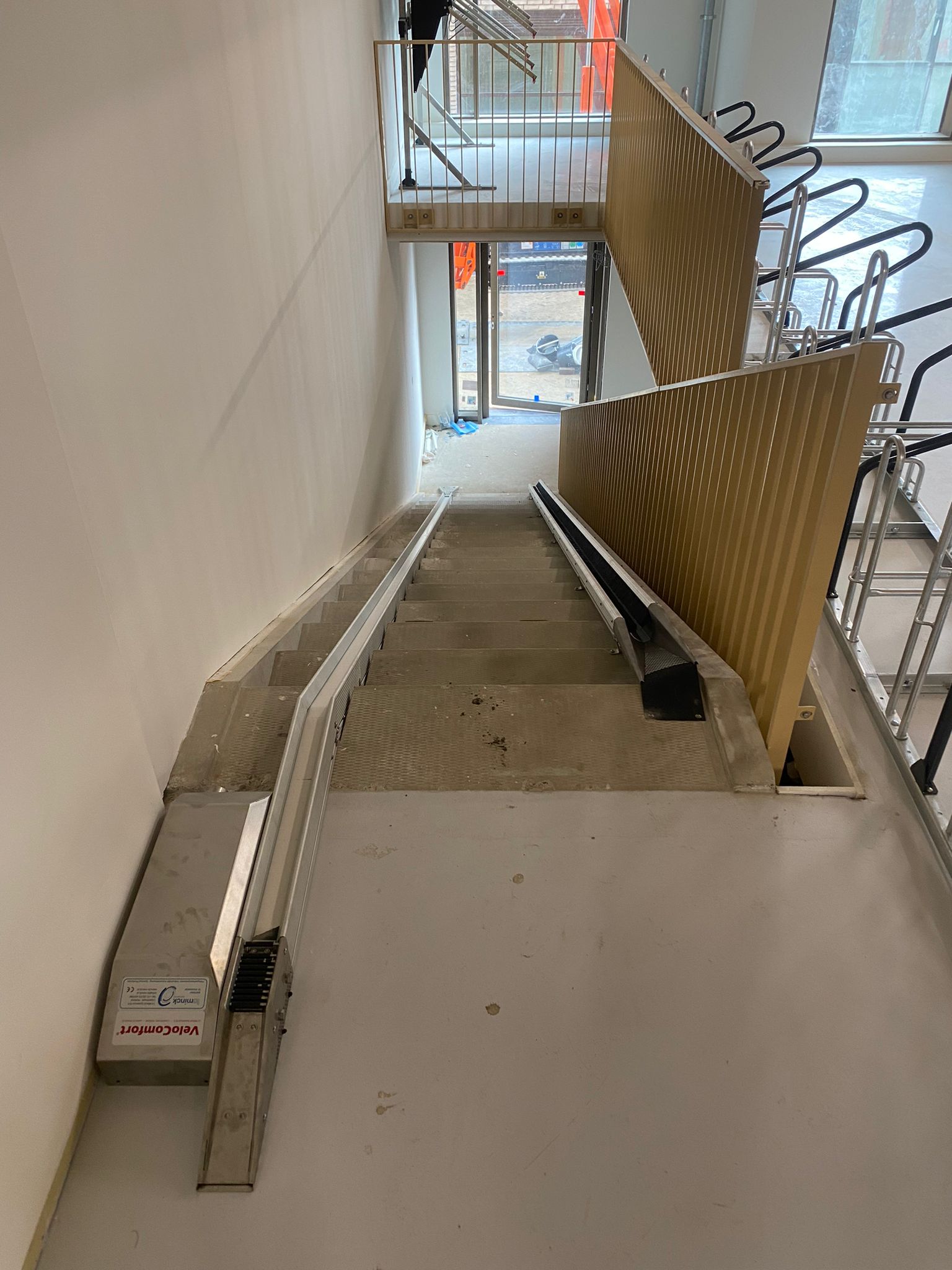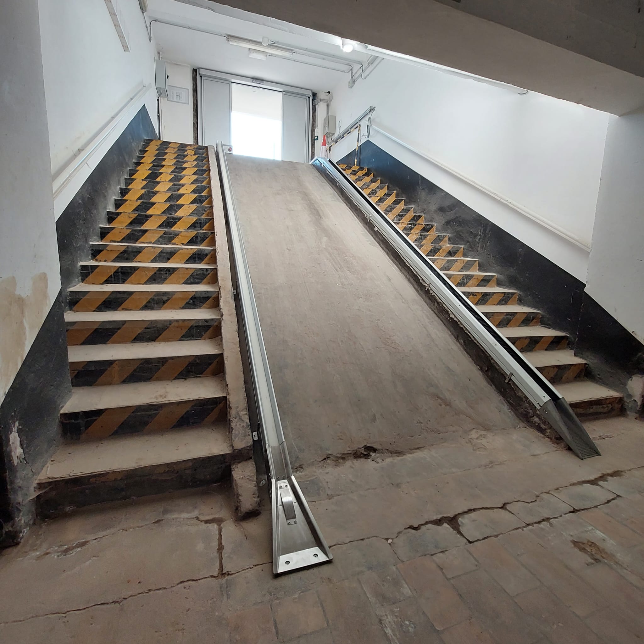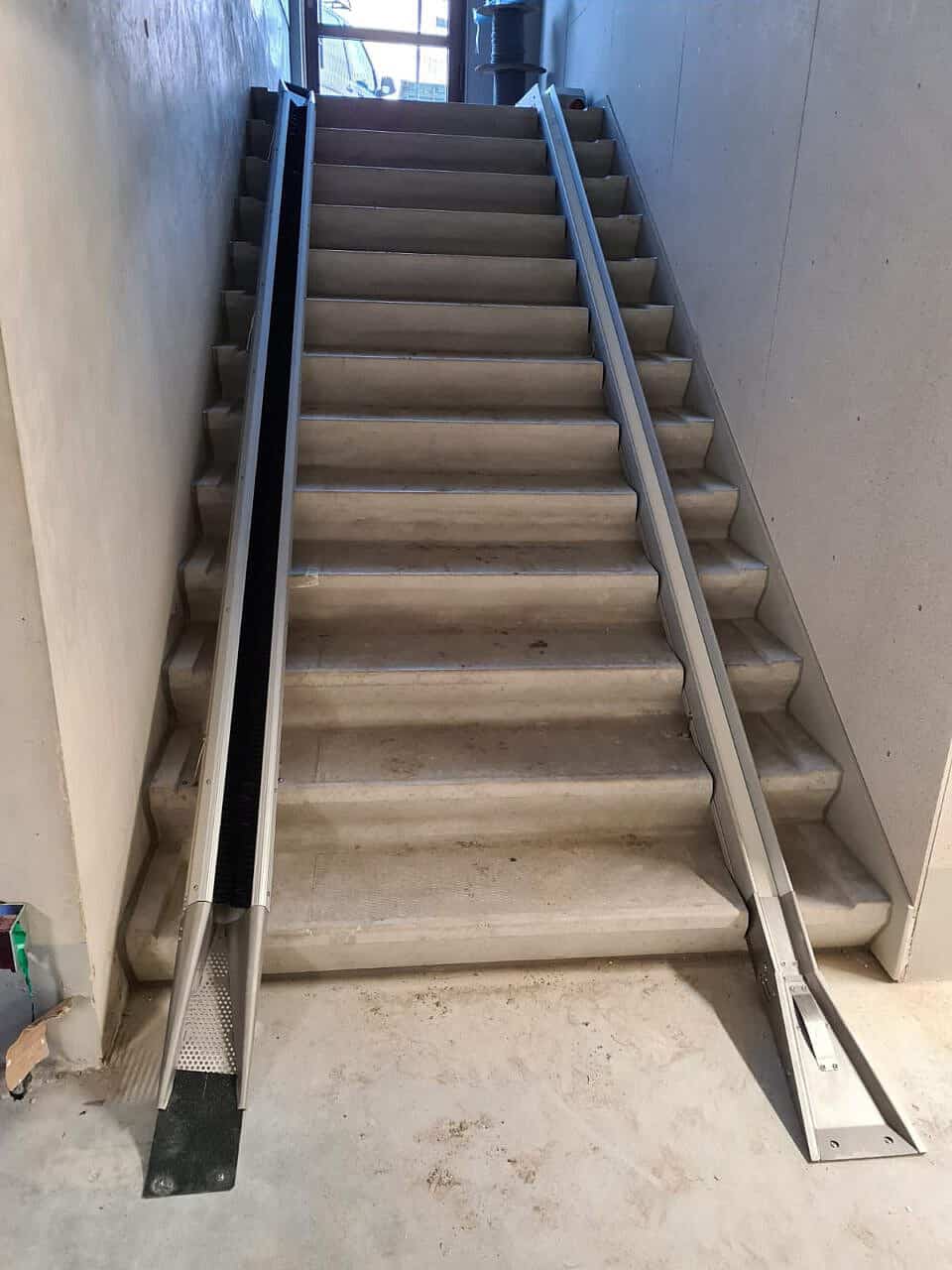 VeloComfort® system is a patented European solution for easy and safe transport of bicycles over stairs and slopes. This innovative bicycle transport system is suitable for various types of stairs, both indoors and outdoors, and offers the perfect solution for steep, narrow, wide, long, and short stairs, with or without landings, as well as a range of slopes.