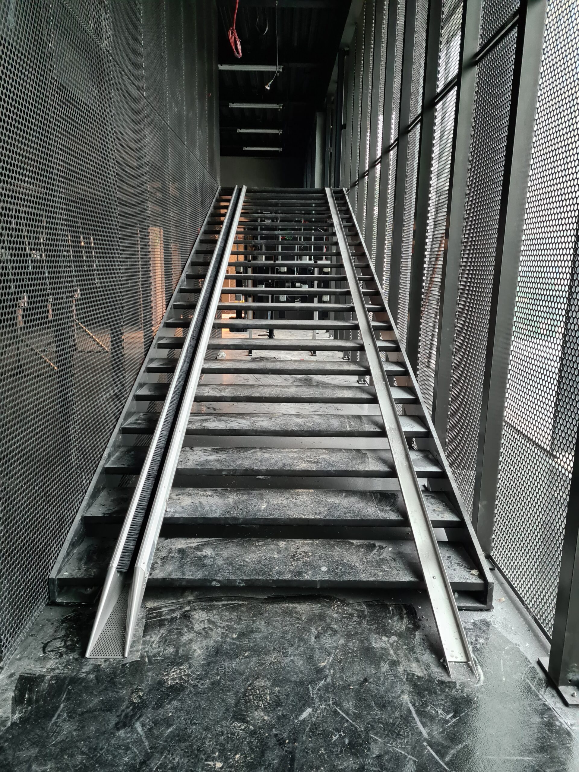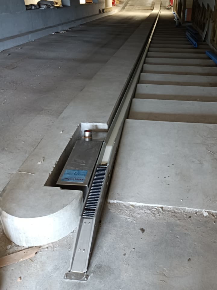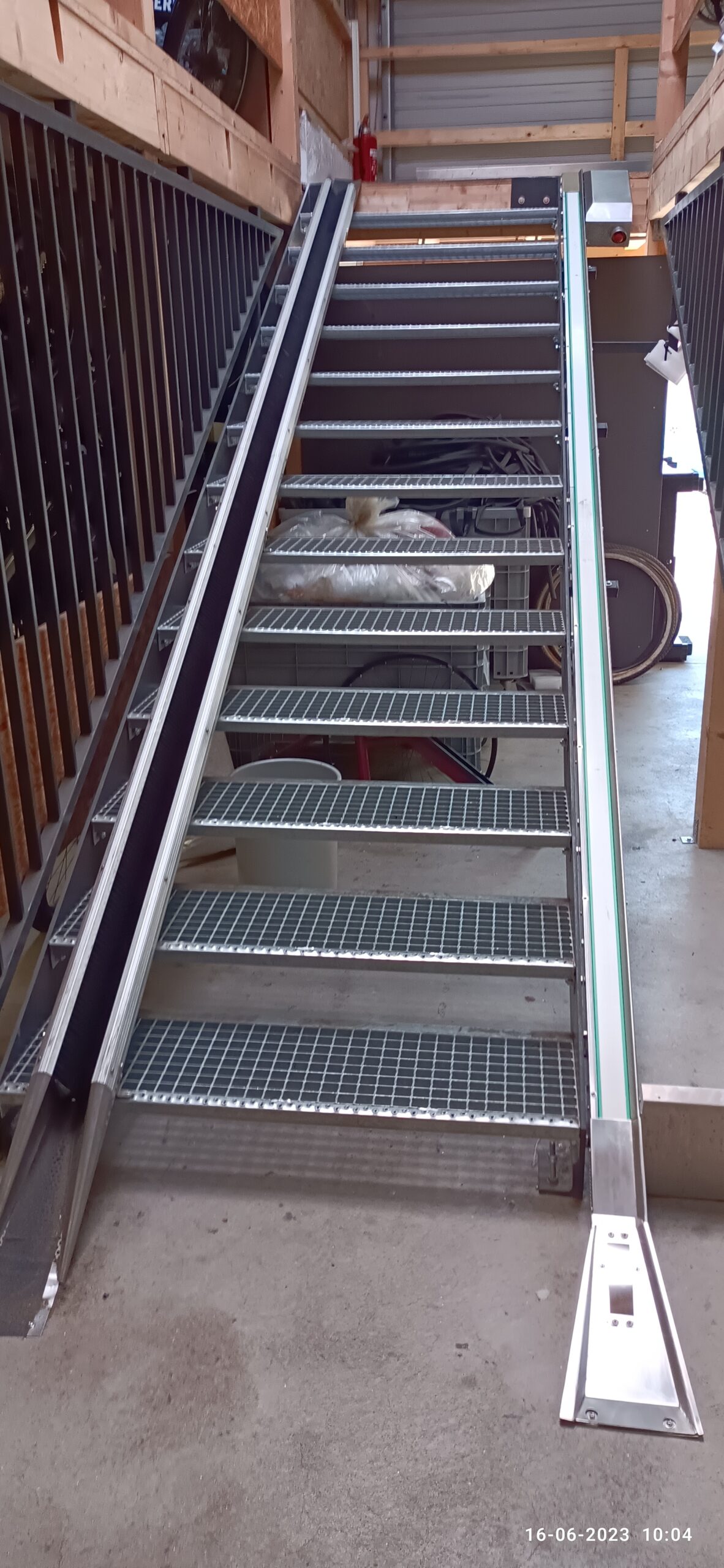 VeloComfort® is an advanced bicycle transport system, specially developed to help cyclists effortlessly move from lower to higher levels when overcoming height differences. The system uses a durable toothed belt installed on the left side of the stairs (as seen from above), allowing users to easily guide their bicycle upward on the right side. The toothed belt runs in a robust, double-walled aluminum gutter that requires little maintenance and ensures long-lasting performance. The drive is powered by a strong electric motor, ensuring smooth and efficient operation even under heavy use.