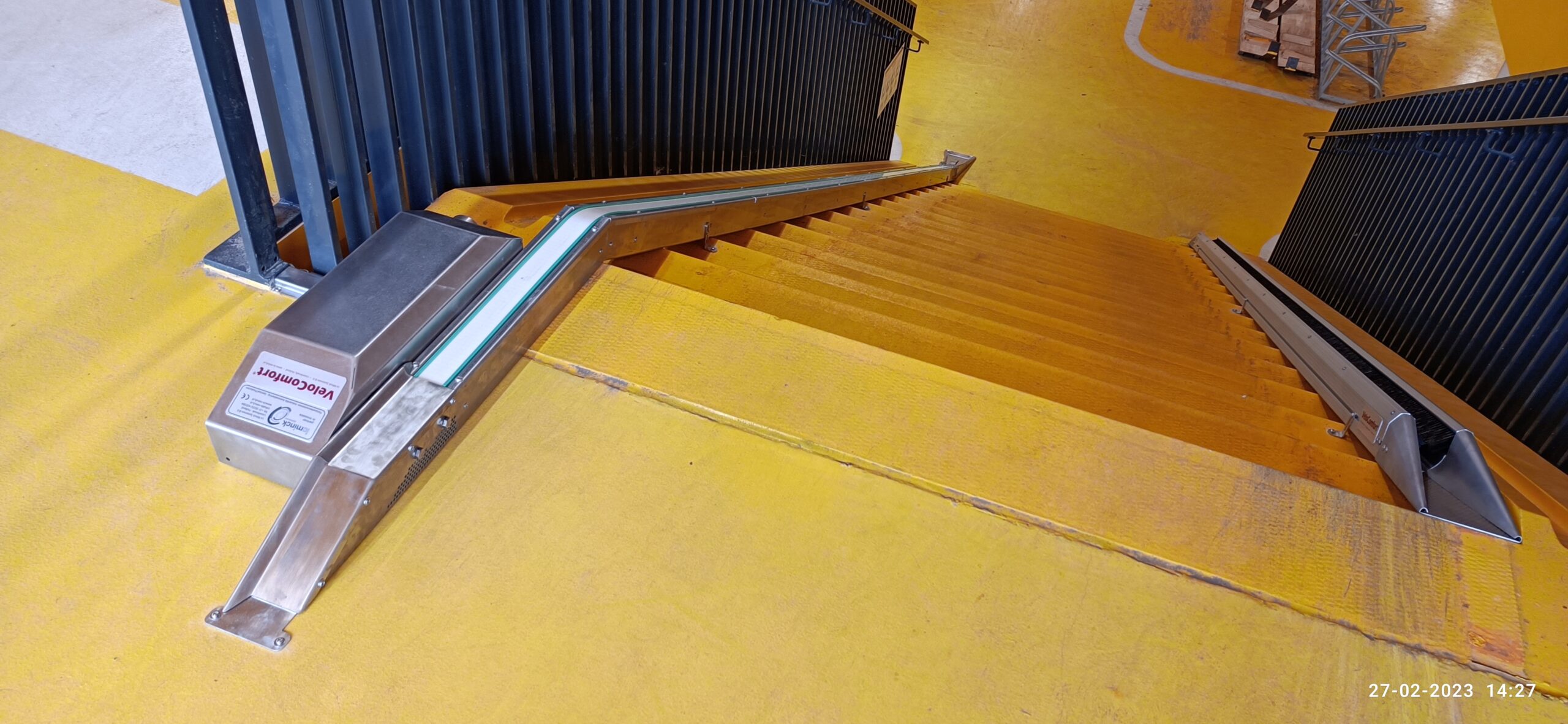 VeloComfort® system is equipped with an advanced sensor that automatically activates the conveyor belt as soon as a bicycle is detected. Once the bicycle is fully removed from the belt, the system stops automatically. This intelligent technology minimizes energy consumption and ensures a user-friendly and safe experience, without unnecessary energy waste.