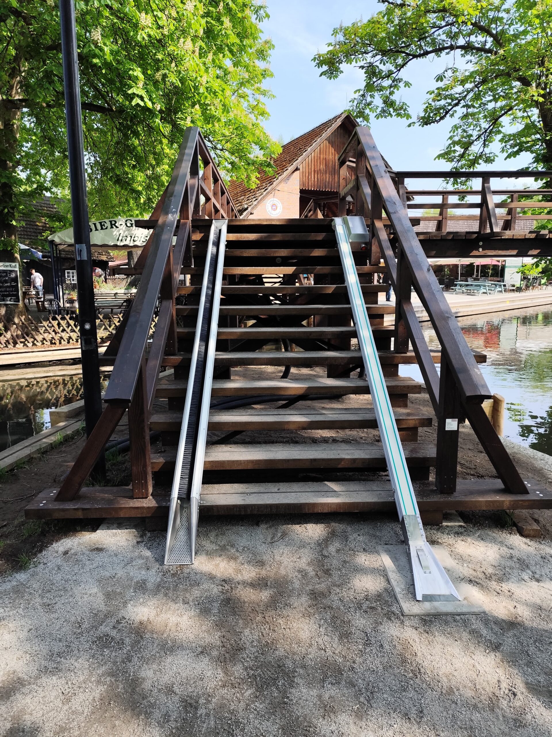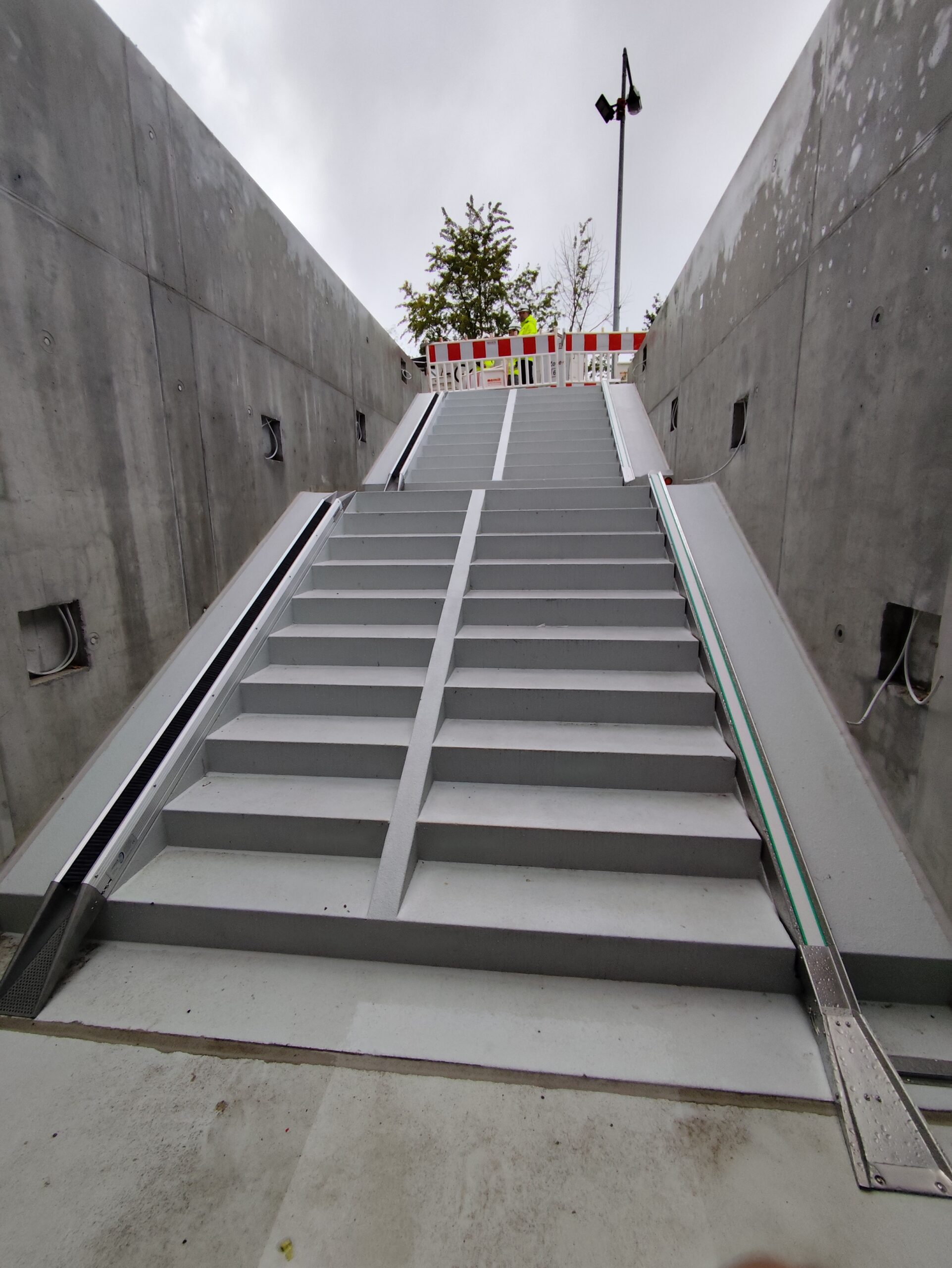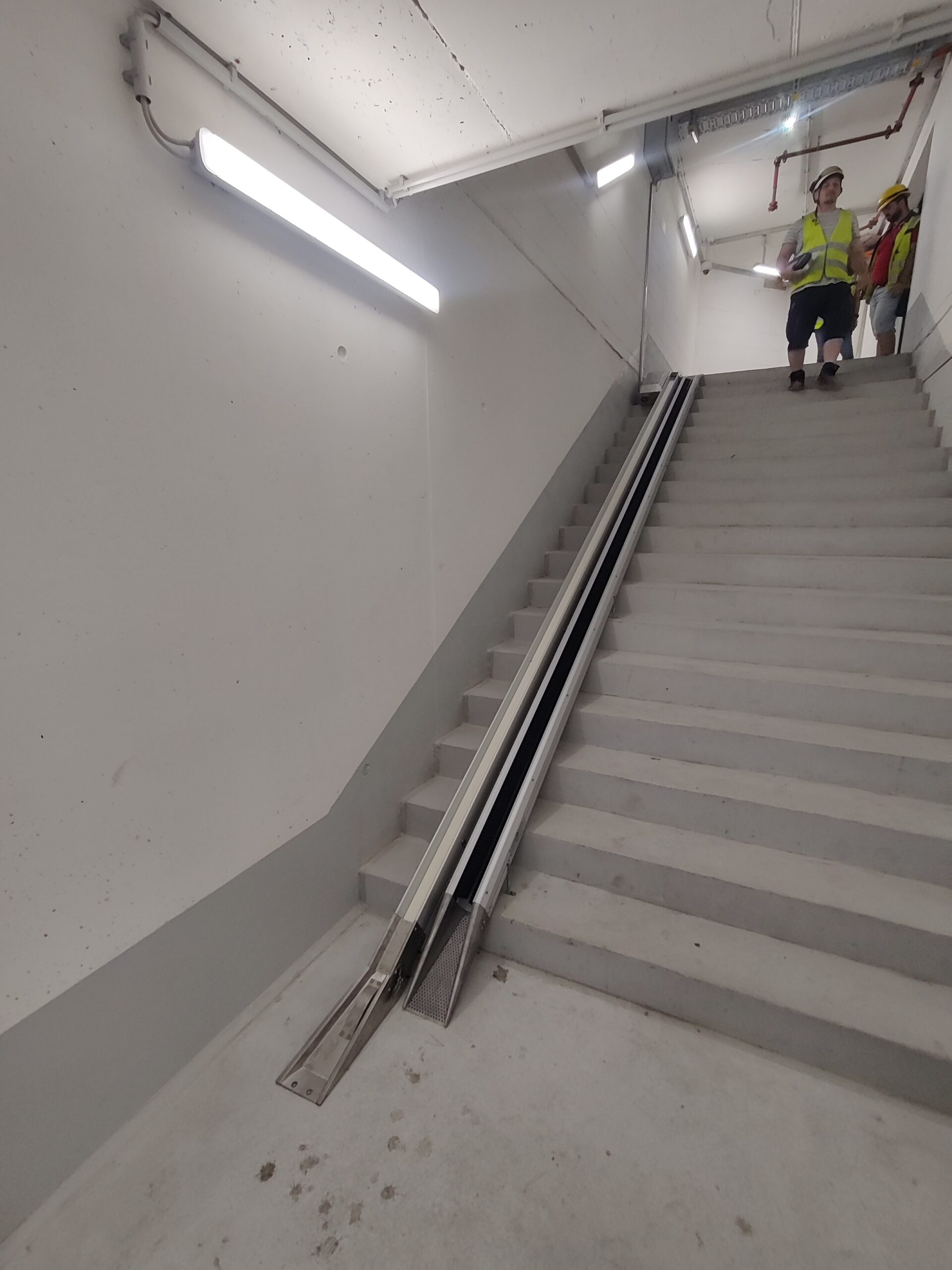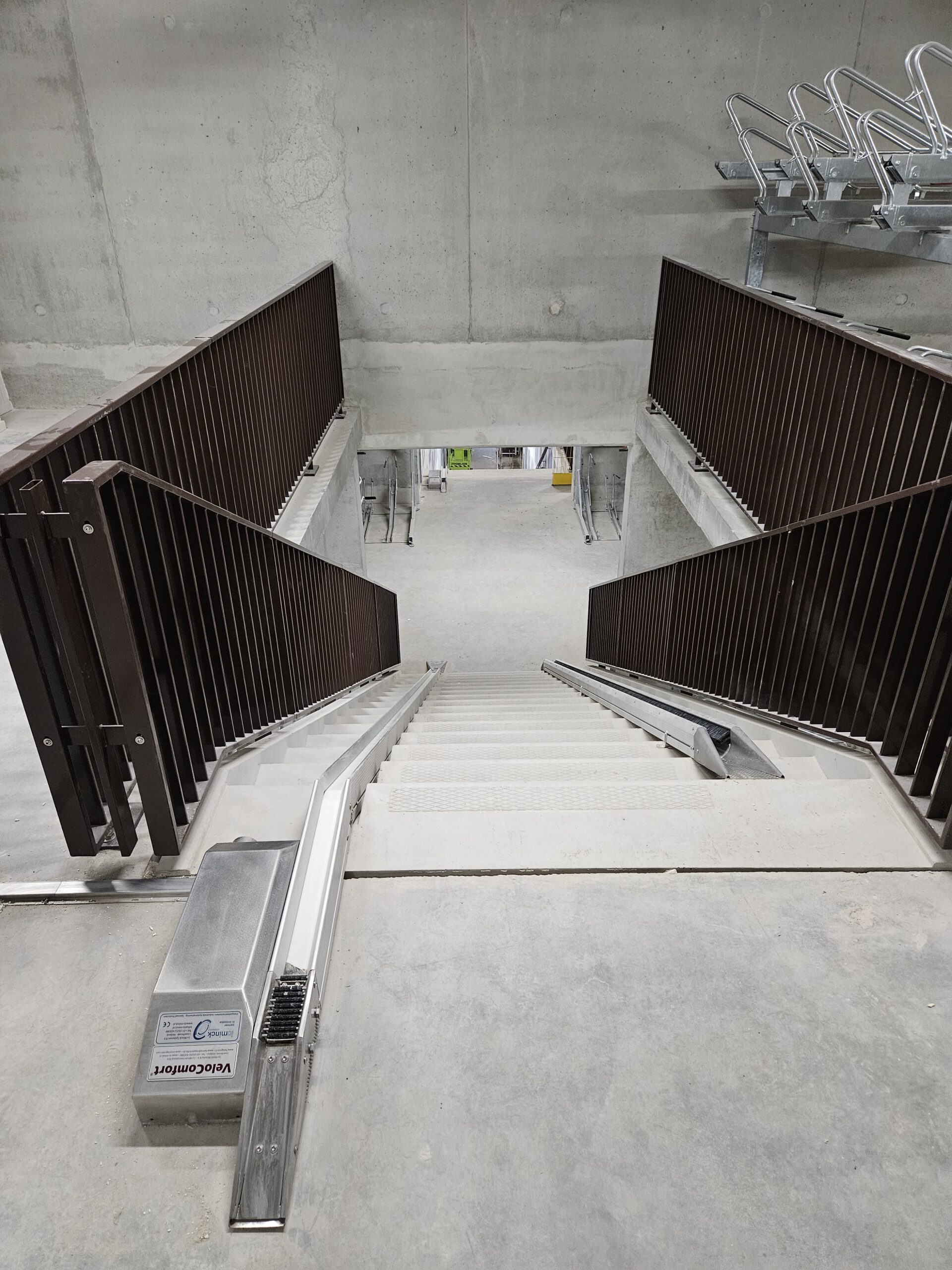 With VeloComfort® system, cyclists can ascend or descend steep stairs and slopes without heavy physical effort. The integrated brush channel ensures a safe descent, while the bicycle lift makes pushing the bike upward effortless. Thanks to the ergonomic design, users can move at their own pace, providing a safe and comfortable experience under all conditions.